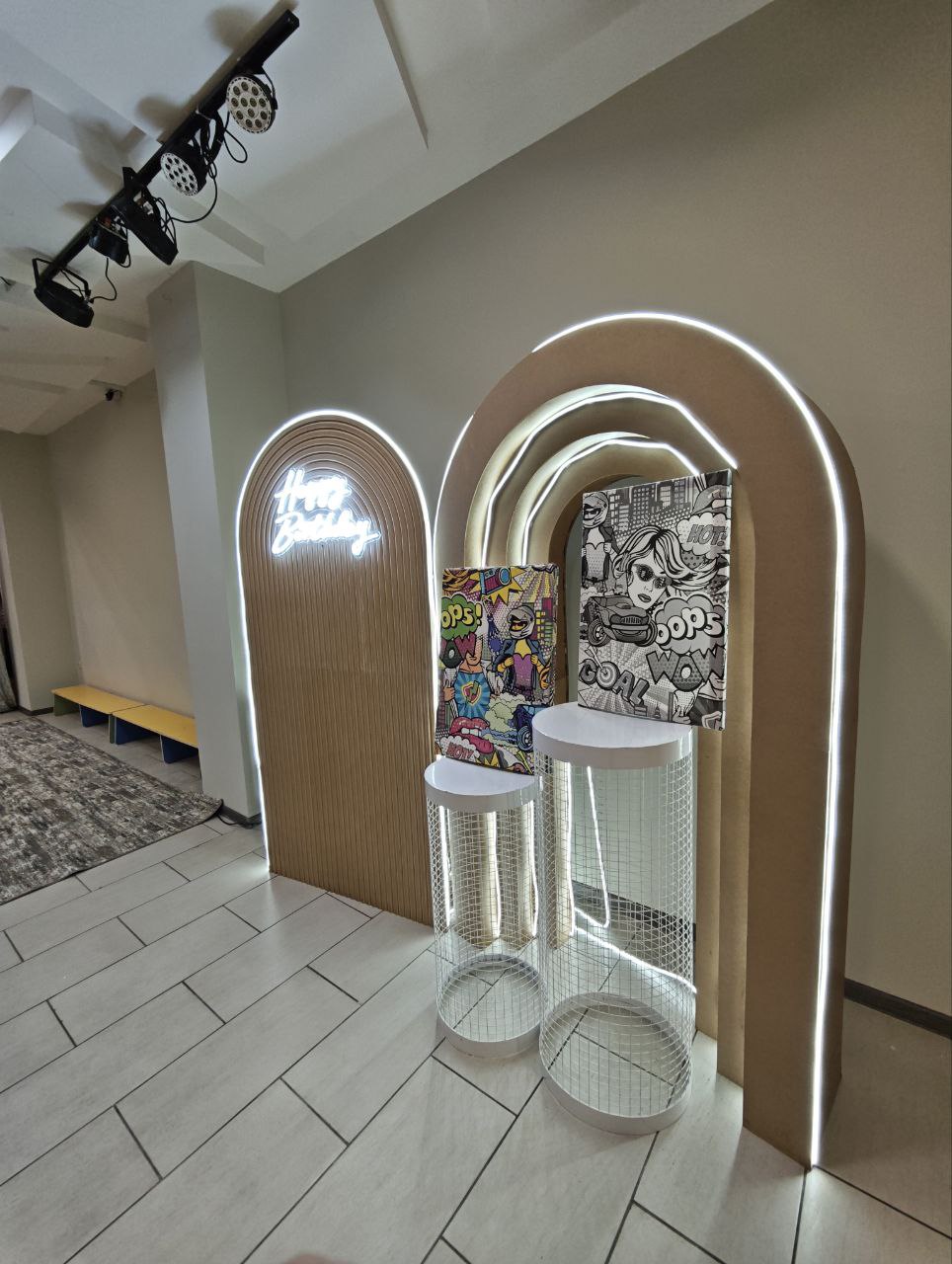 Наша игровая комната очень красочная и эффектно смотрится на фотографиях. Игра света, неповторимый дизайн и яркие акценты нашей игровой комнаты делают праздники запоминающимися.